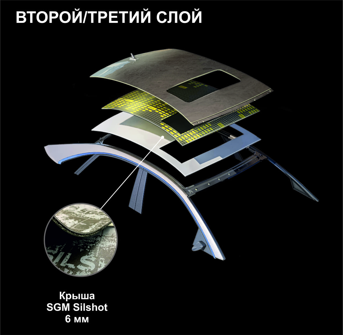 - В качестве второго/третьего слоя шумоизоляции применяются мембранный материал – SGM Silshot Дополнительно используется суперэффективный шумопоглотитель SGM Violon VEL.